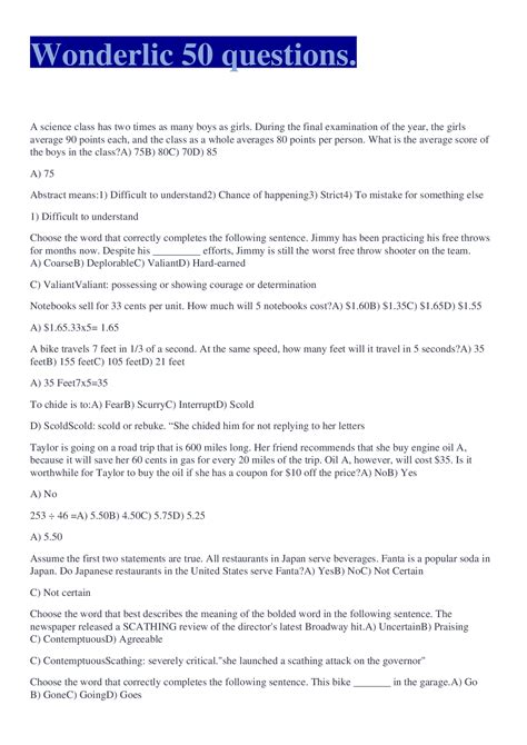 Read wonderlic sample test 50 questions Kindle Editon By Click Button. wonderlic sample test 50 questions it’s easy to recommend a new book category such as Novel, journal, comic, magazin, ect. You see it and you just know that the designer is also an author and understands the challenges involved with having a good book. You can easy klick for detailing book and you can read it online, even you can download it